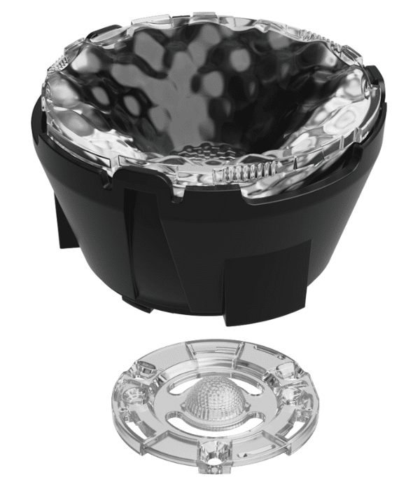 GALAXY1 is an easy to integrate base, being screw mounted to the PCB and allowing twist and lock assembly of the selected set. To ensure best possible color mixing results, GALAXY1 is equipped with 13,6mm spaced centering pins.