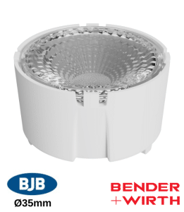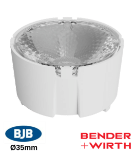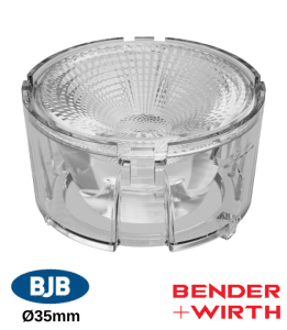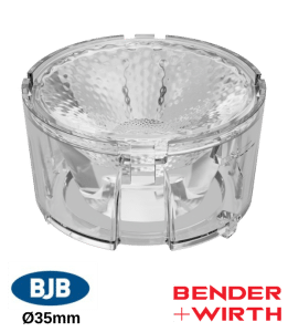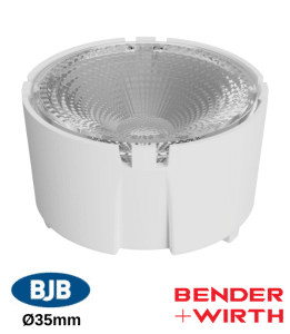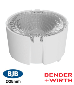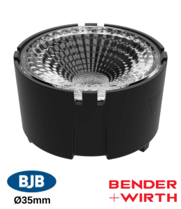 HADAR35N is a Ø 32.7 mm (⌀ 35 mm with holder), ~15° (FWHM) Narrow beam PMMA collimator. Diamond turned optic provides industry’s highest efficiency and efficacy with smooth cut-off and extremely low surface brightness.