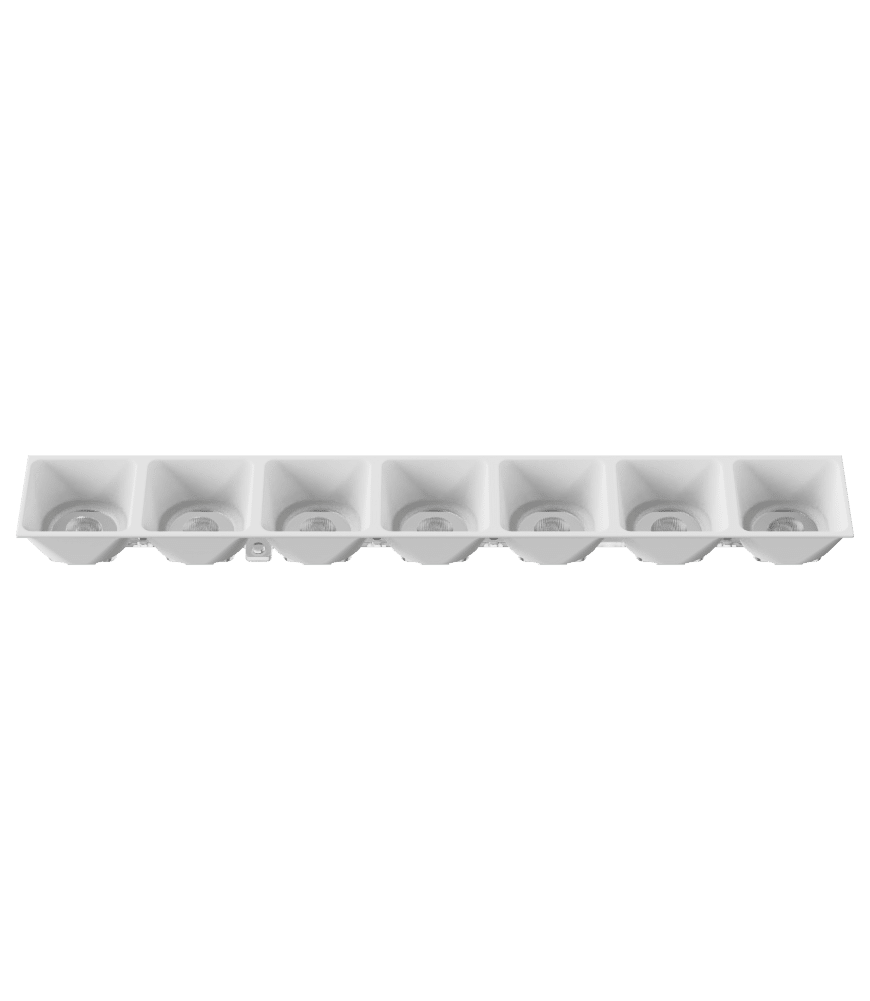 K2POLLUX7X1E101M consists of POLLUX7X1E lens and LVR2POLLUX7X101M white tall louvre (H = 20.25 mm) with matt finishing. This product is ideal for wall grazing, wall washing, corridor/hall way and aisle lighting applications in Offices, Supermarkets, Hotels and for e.g Art galleries. We recommend to put 2pcs of LEDs side-by-side to maximize efficiency and lumen output.