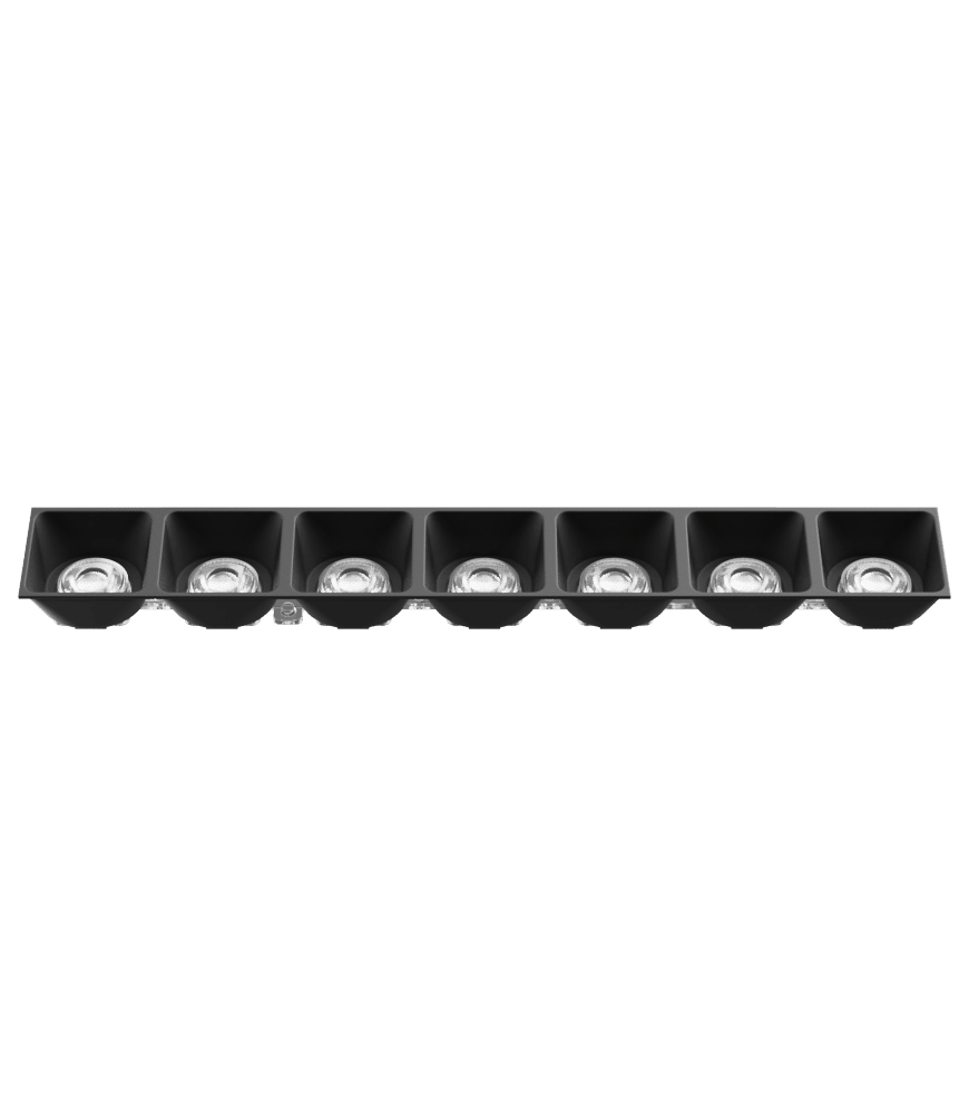 K2POLLUX7X1N102M consists of POLLUX7X1N lens and LVR2POLLUX7X102M black tall louvre (H = 20.25 mm) with matt finishing. This product is ideal for applications requiring low UGR and discreet installation such as: Accent lighting, spot- and track lighting where narrow beam with smooth cut-off is required.