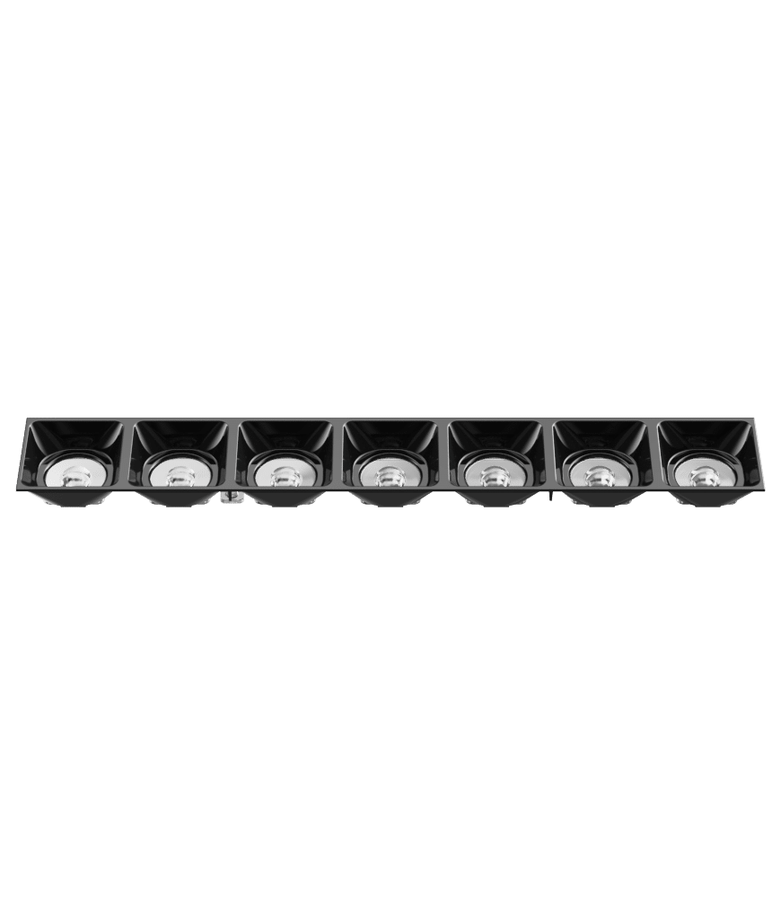 KPOLLUX7X1DA35102 consists of POLLUX7X1DA35 lens and LVRPOLLUX7X102 black low profile louvre (H = 15.8 mm) with glossy finishing.