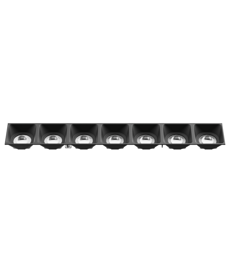 KPOLLUX7X1L102M consists of POLLUX7X1L lens and LVRPOLLUX7X102M black low profile louvre (H = 15.8 mm) with matt finishing. This product is ideal for suspended or recessed installations for Offices, Supermarkets, High bay and Hospitality applications: such as hotels. We recommend to put 2-4pcs of LEDs side-by-side to maximize efficiency and lumen output.
