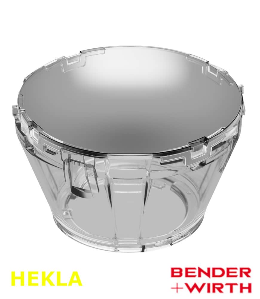 HADAR70NWF900 consists of HADAR70N collimator, HADAR70WF frosted window and a clear holder. This combination makes the light distribution and cutoff extra smooth. Holder is compatible with HEKLA-G2, HEKLA-K, Bender+Wirth HEKLA/HEKLA-XL, HEKLA-G2B solderless connectors.