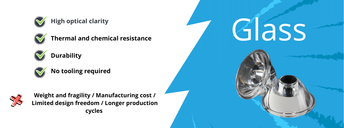 - High optical clarity: Glass maintains high transmission across a broad range of wavelengths, including UV and IR.